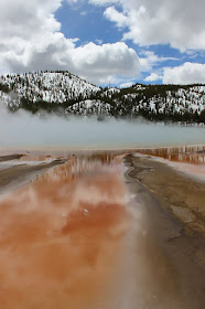 Friend of Head in the Clouds Amherst, to be known as "smf," sent us this amazing photo of Yellowstone from her recent journey out west. Those are cumulus clouds in the sky (background), with steam rising off (I am now guessing) Grand Prismatic Hot Spring. Thanks so much for sending this our way!